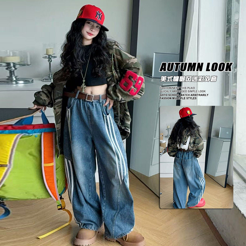 美式慵懒风儿童迷彩外套男女童休闲拉链卫衣小女孩中长款连帽衫潮