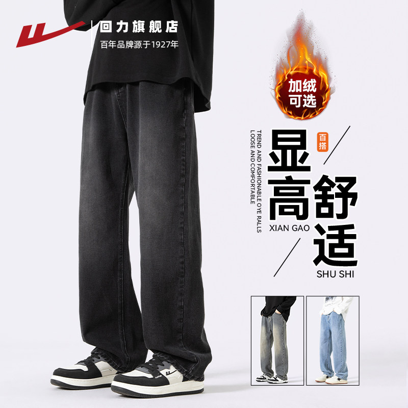 回力牛仔裤男款秋冬季2026新款直筒垂感休闲加绒长裤宽松阔腿裤子
