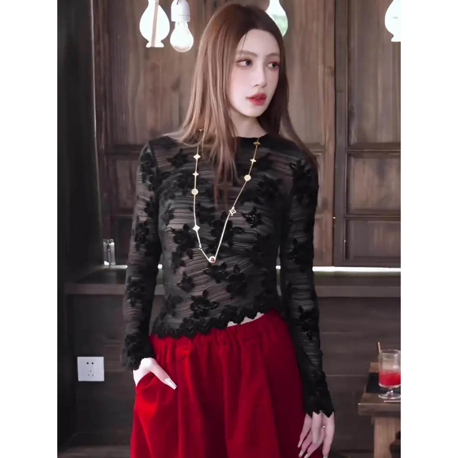 - 蕾丝打底衫透视