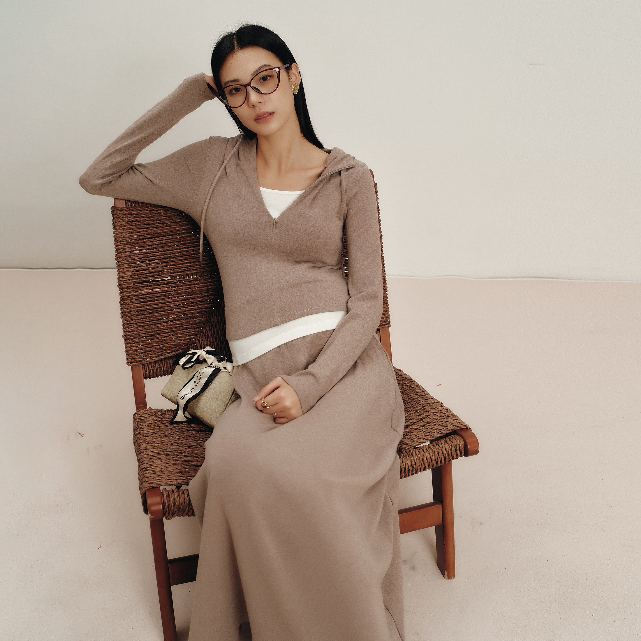 BELLYWEAR孕妇装2026新款时尚套装休闲运动撞色连帽针织长裙套装