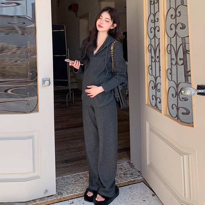 孕妇装秋冬款时尚外穿宽松高级感休闲款连帽裤腿裤女2024新款套装