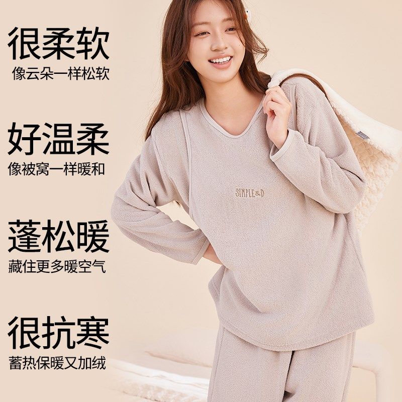 秋冬加厚孕妇家居服可外穿加绒新款孕妇睡衣孕期宽松孕妇休闲套装