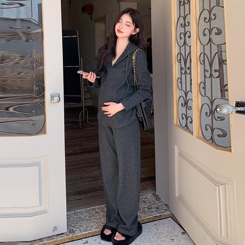 孕妇套装春秋2026新款洋气时髦减龄连帽休闲长袖上衣裤子两件套女