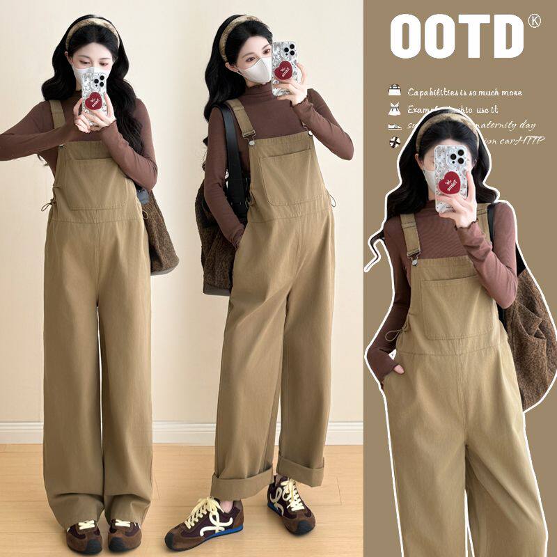 孕妇休闲套装2025新款春秋款韩版宽松背带裤长袖打底衫孕妇两件套