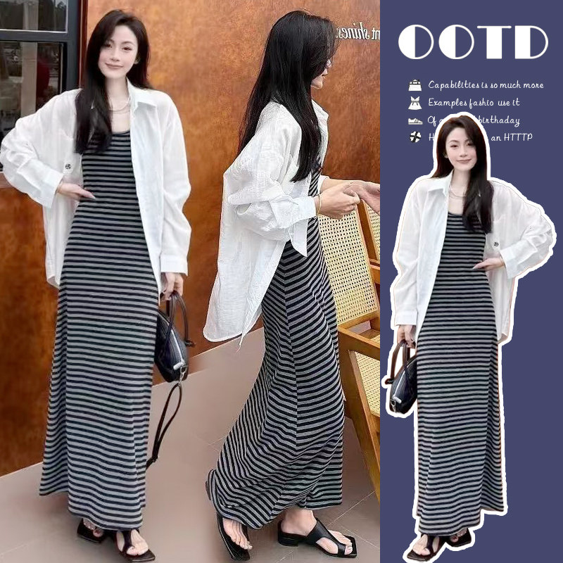 2026春夏新款韩系高级松弛感穿搭衬衣经典条纹连衣裙孕妇休闲套装