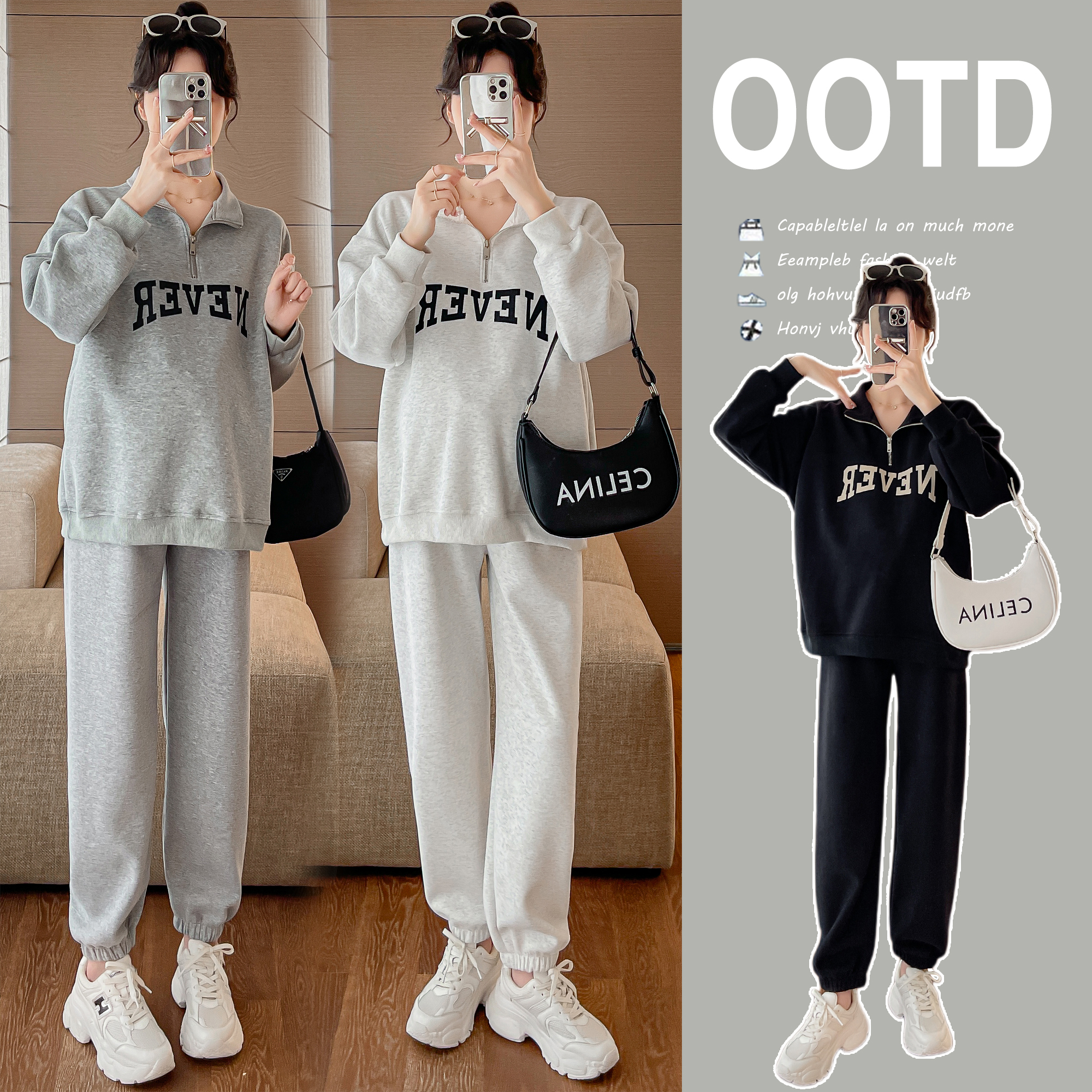 诺初孕妇装~慵懒风秋冬加绒套装小个子显瘦洋气休闲运动卫衣上衣