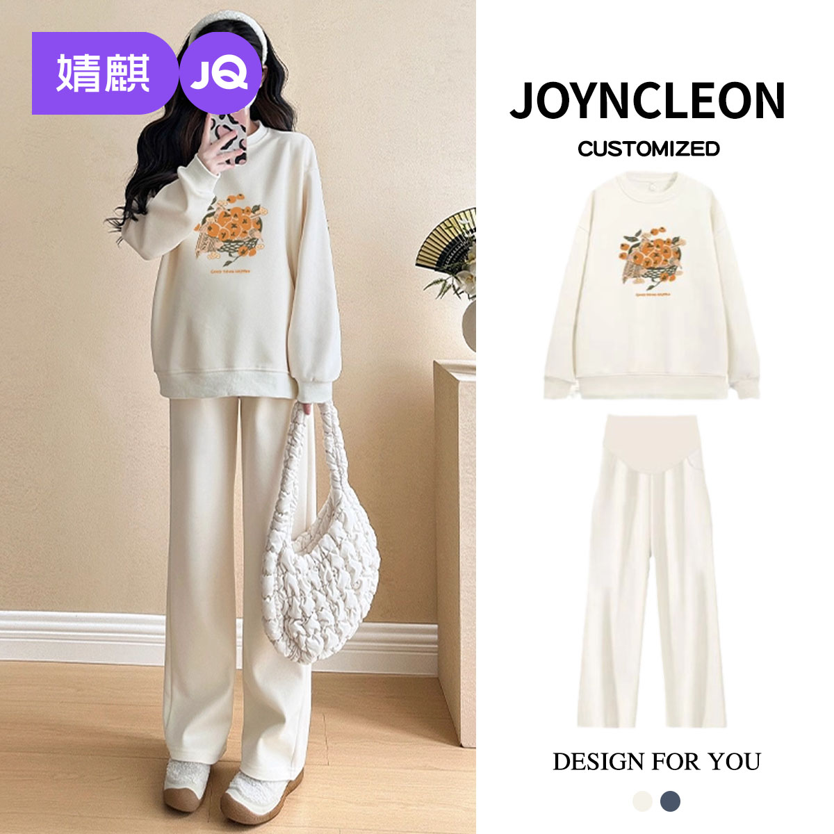 孕妇装秋冬加厚圆领卫衣2025新款套装宽松显瘦日常通勤休闲两件套