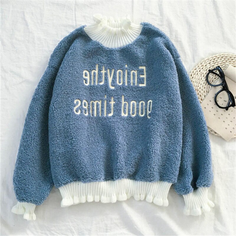 羊羔绒半高领卫衣女纯棉新款学生套头加绒加厚长袖韩版宽松上衣潮