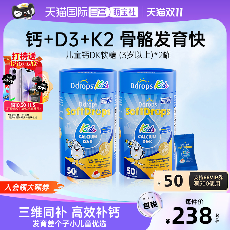 【自营】Ddrops滴卓思儿童钙软糖非液体钙镁锌宝宝钙片钙DK软糖*2