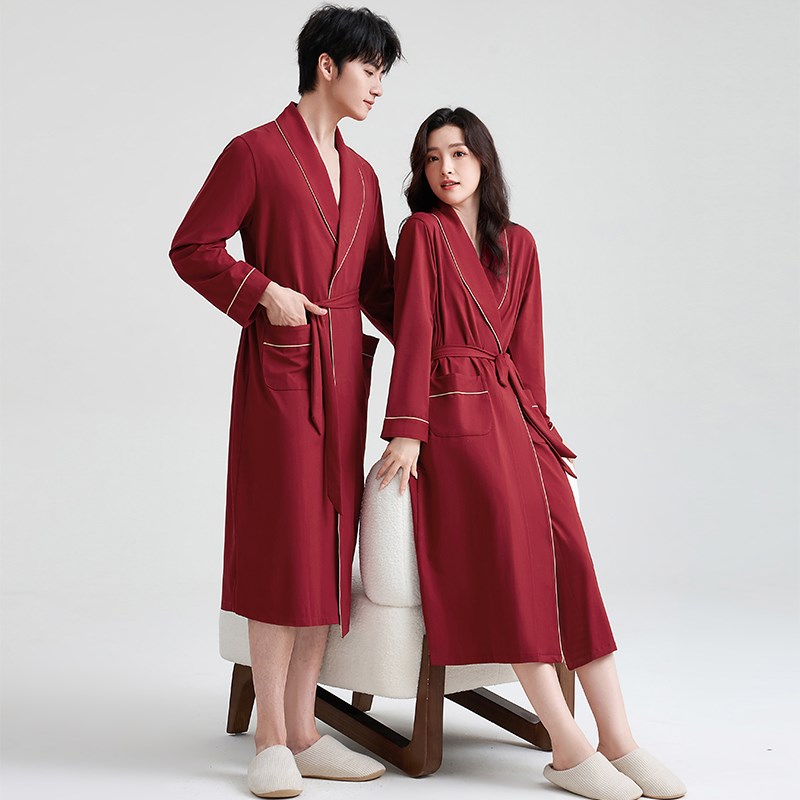 情侣睡袍春秋季女结婚新婚浴袍晨袍红色男睡衣家居服套装夏季薄款