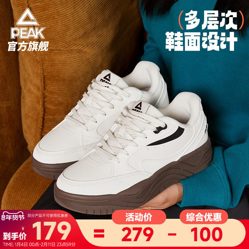 匹克云迹态极板鞋女鞋秋冬新款厚底增高小白鞋皮面休闲鞋子运动鞋