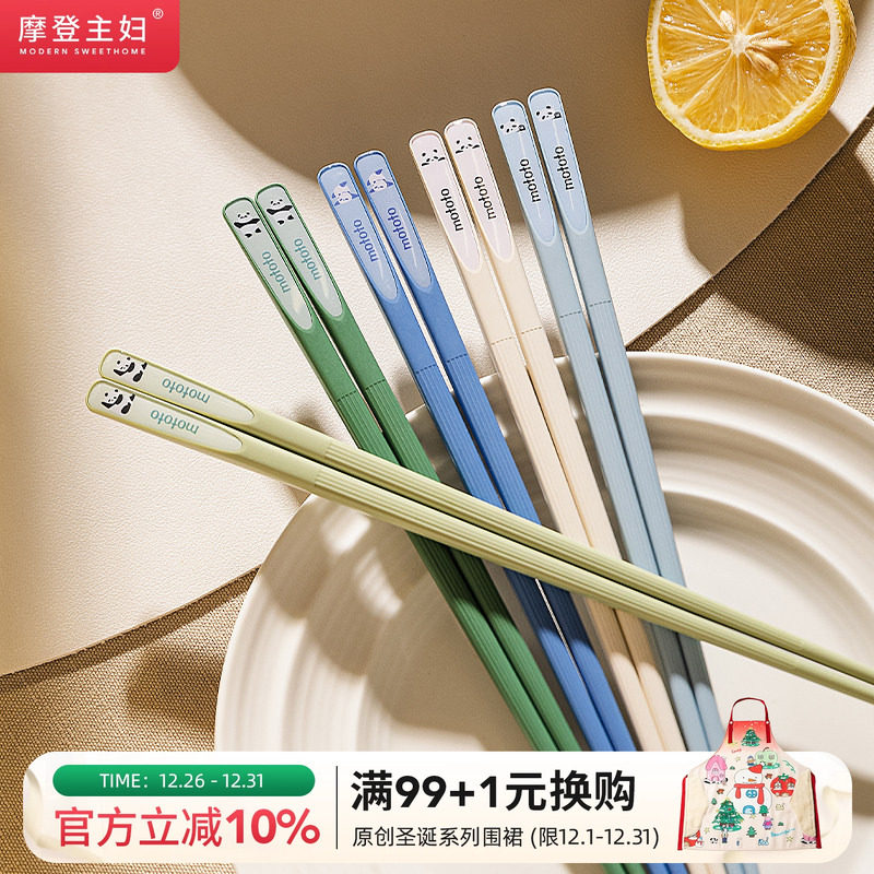摩登主妇熊猫筷子家用分人高档抗菌防霉家庭专人专用合金筷单人装