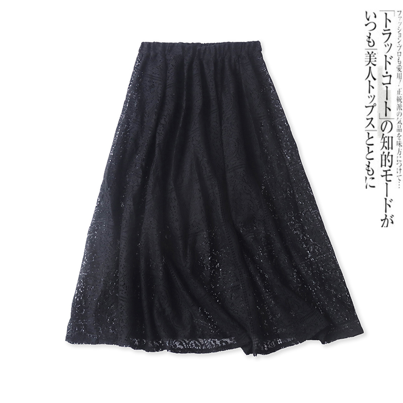 蕾丝半身长裙春夏新款外贸女装百搭时尚松紧高腰显瘦A字黑裙18020