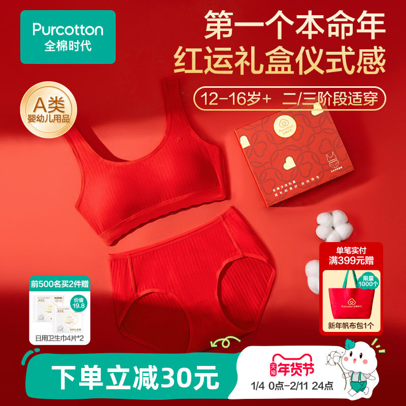 【礼盒装】全棉时代少女发育期红色内衣内裤女孩中学生本命年套装
