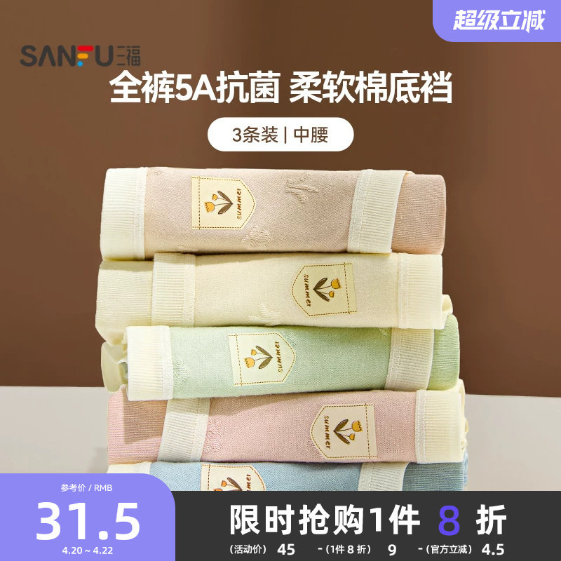 好宠a类抑菌女内裤7A蚕丝抗菌裆中腰学生纯棉透气青少年2026新款