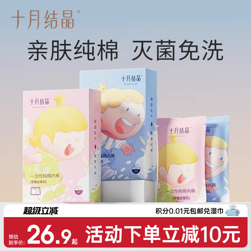 十月结晶儿童一次性内裤纯棉男女童便携无菌学生旅行日抛免洗短裤