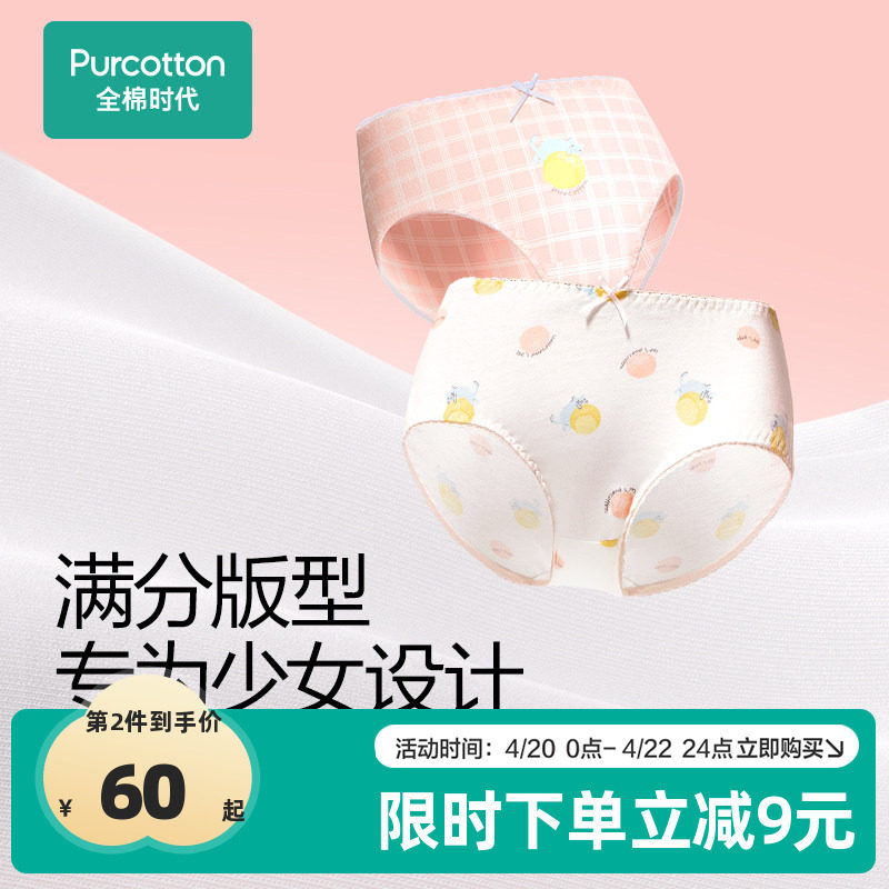 全棉时代女童内裤纯棉中腰透气学生可爱青少年高中生少女内裤 2条