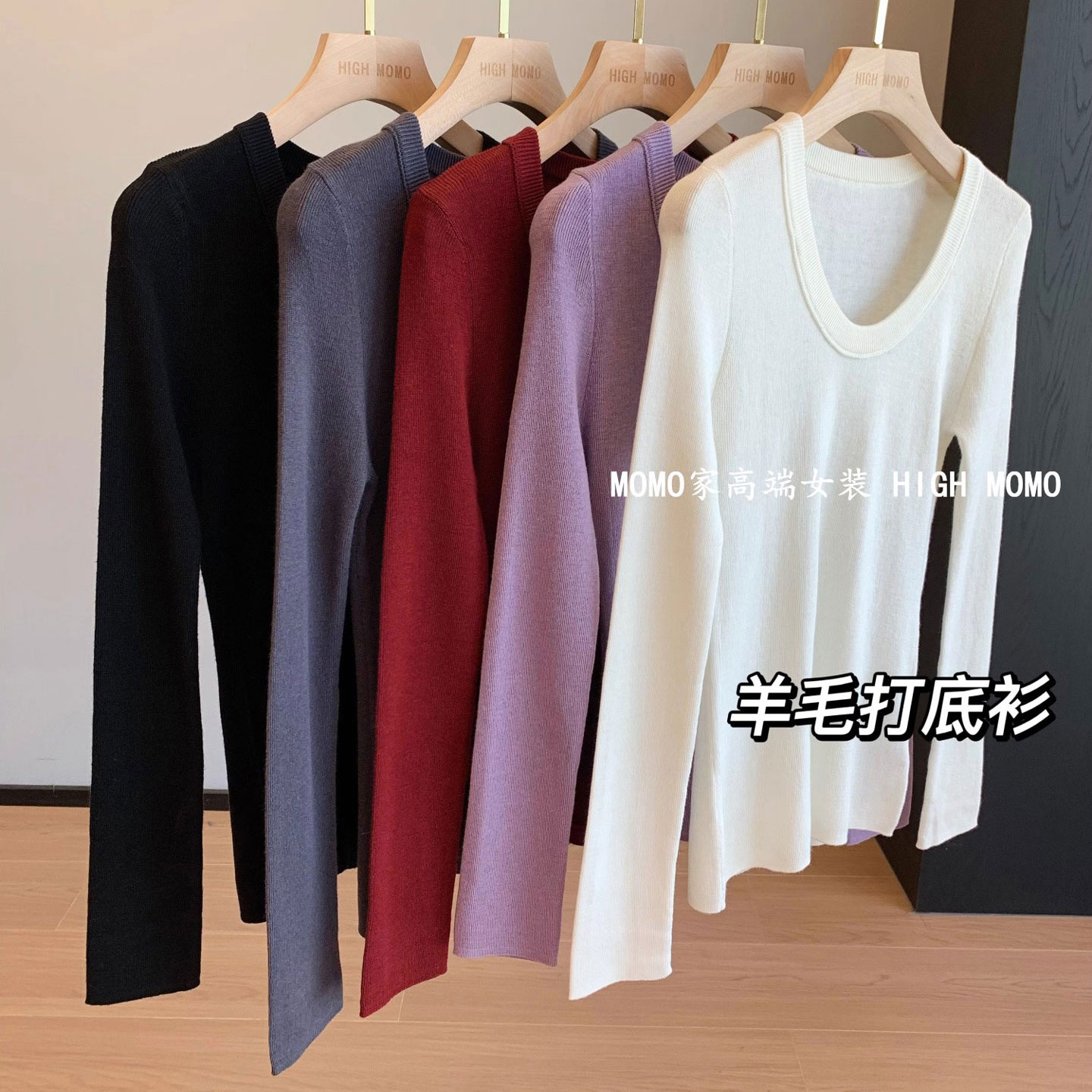 羊毛打底衫~基础佰搭软软糯糯高弹洋气针织U领羊毛打底毛衣女秋