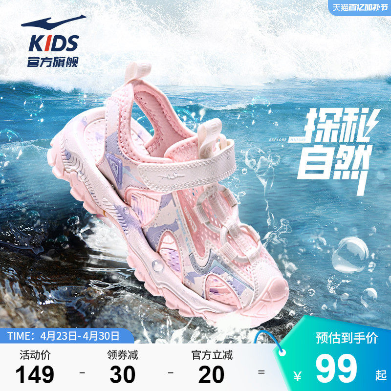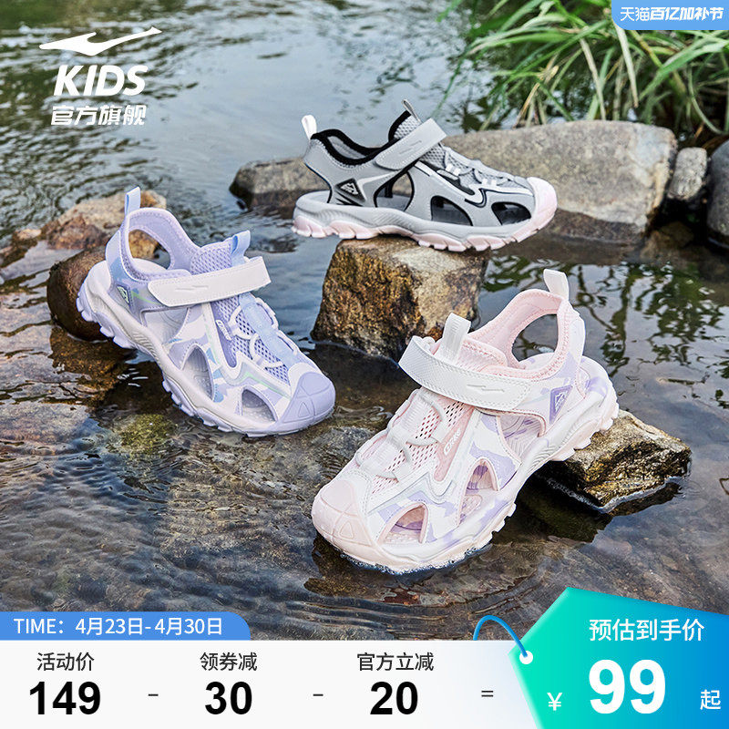 安踏儿童凉鞋男童溯溪鞋夏季网面透气男宝一脚蹬洞洞鞋女童沙滩鞋