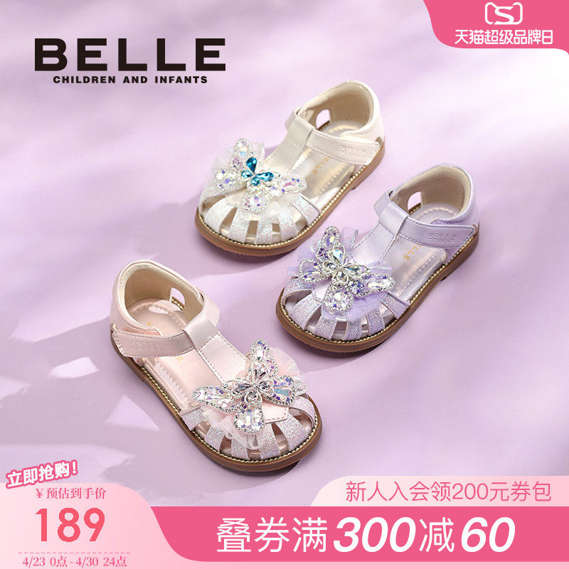 百丽童鞋女童凉鞋春夏新款幼童宝宝鞋儿童学步包头鞋小女孩公主鞋
