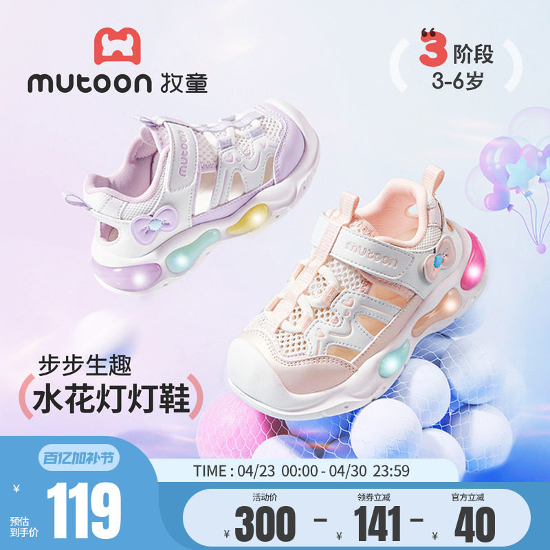 牧童女童凉鞋儿童闪灯鞋2026夏季新款透气运动童鞋轻便洋气公主鞋