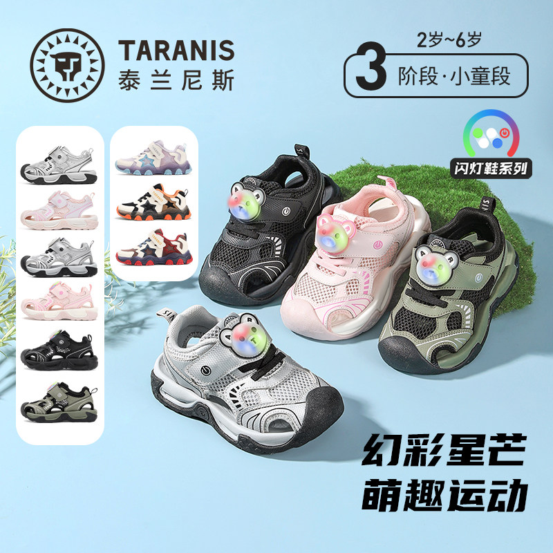 泰兰尼斯儿童闪灯鞋户外凉鞋夏季新款包头凉鞋男女童休闲运动凉鞋