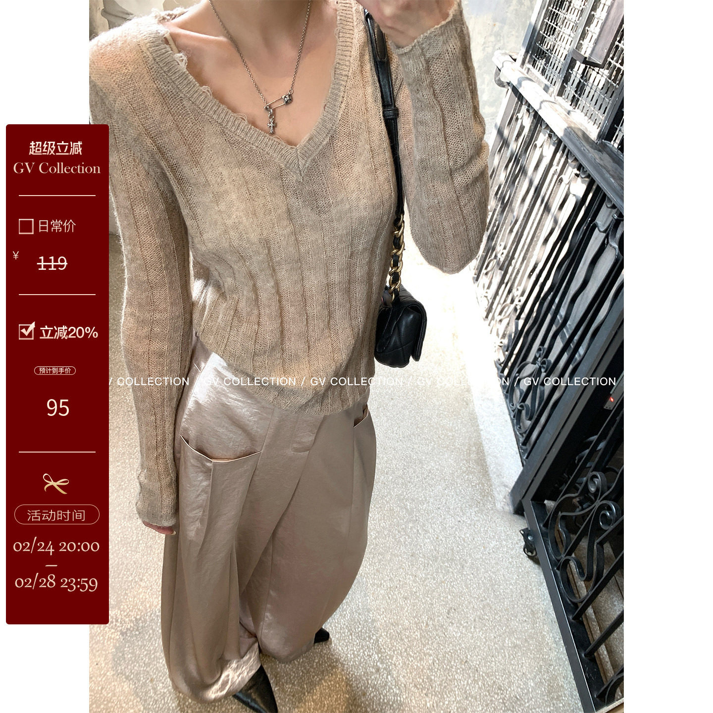 GV大白哥 轻透羊毛 V领微透撕破针织衫上衣气质春季新款百搭显瘦
