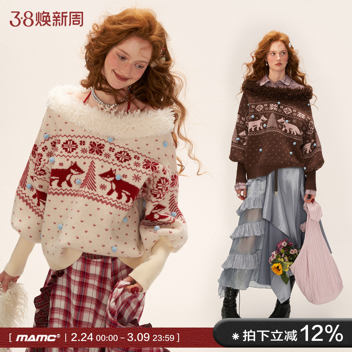 MAMC狐狸费尔岛大v领毛衣针织衫女2025新款宽松慵懒风设计感外套