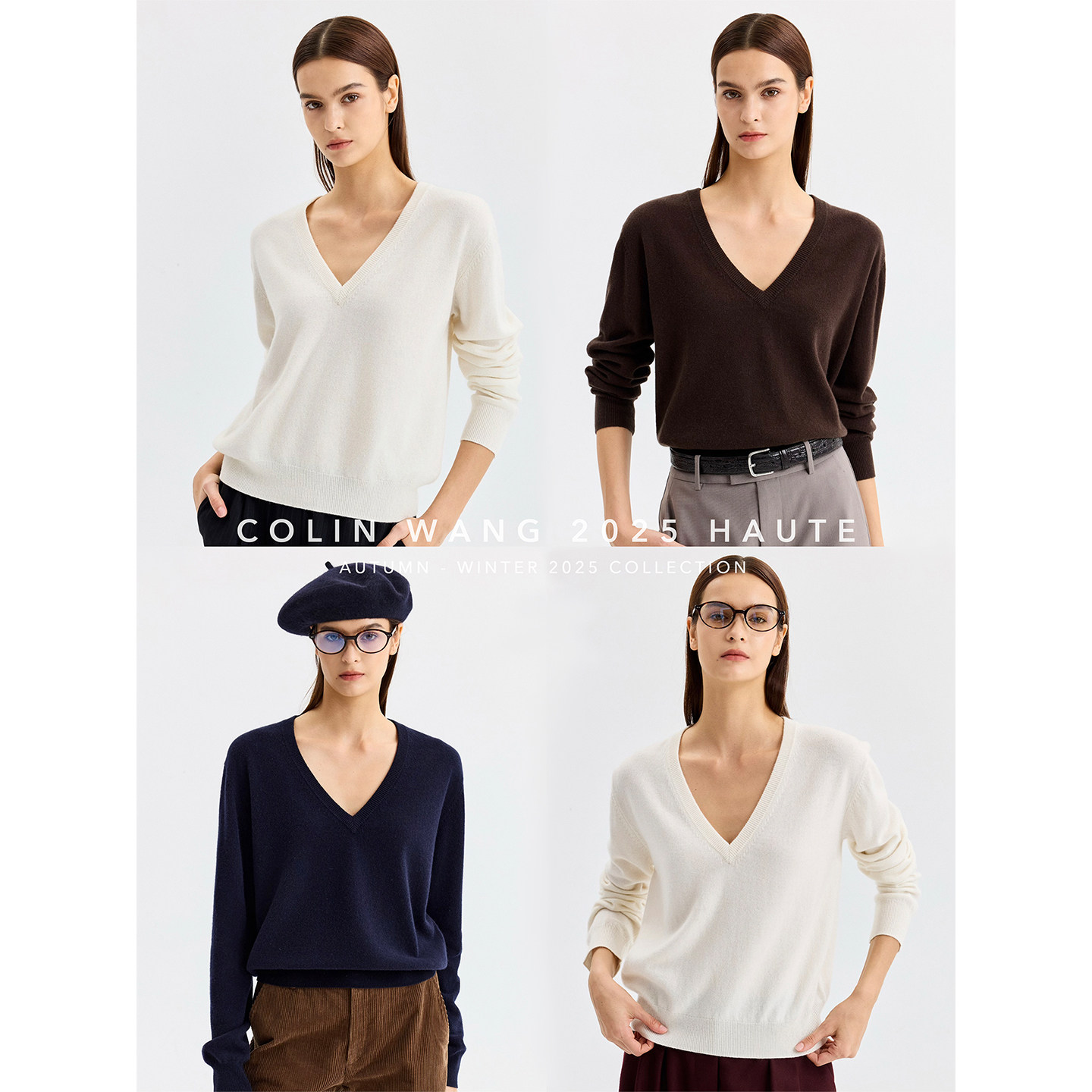 COLINWANG-智性漫游|澳洲进口美丽奴羊毛高智感学识风大V领针织衫