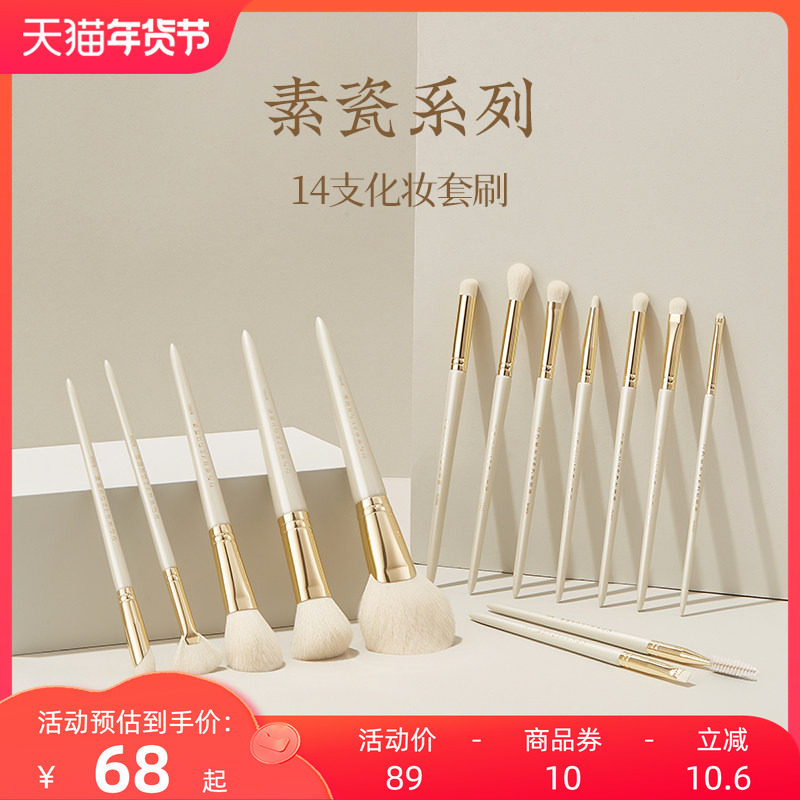 朗颜素瓷14支化妆刷套装初学者眼部修容散粉高光遮瑕眼影全套软毛