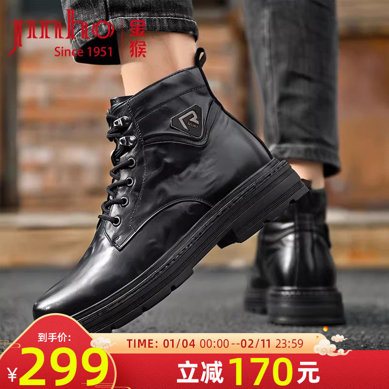 金猴男靴2025冬季新款牛皮英伦风加绒保暖时尚马丁靴黑色男士棉鞋