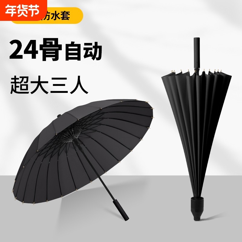 24骨弯钩防水套雨伞男大号长柄伞自动女抗加大抗风伞加固黑色出门