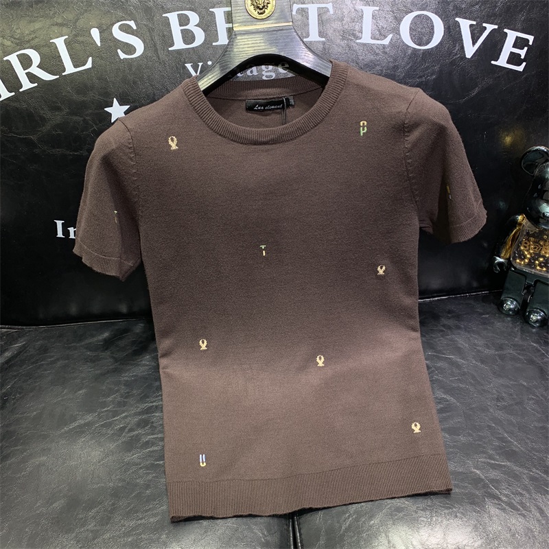 夏季短袖T恤男士修身潮流ins体恤2025新款高级感潮牌针织半袖衣服