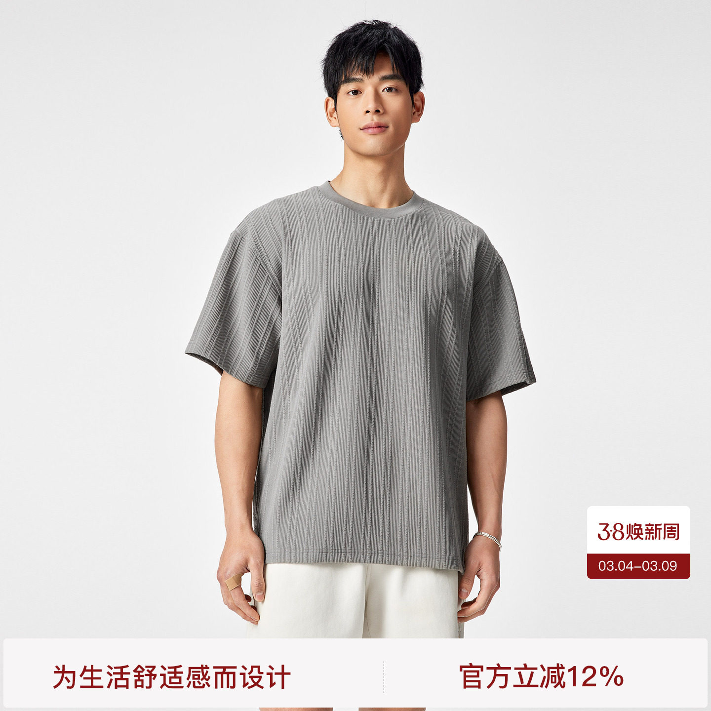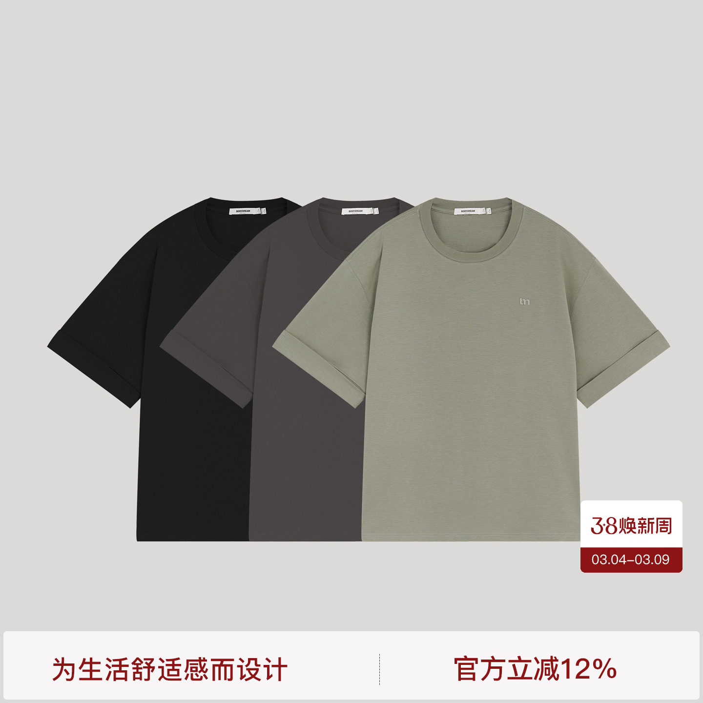BODYDREAM基础短袖男款t恤2025新款夏圆领针织半袖休闲宽松打底衫