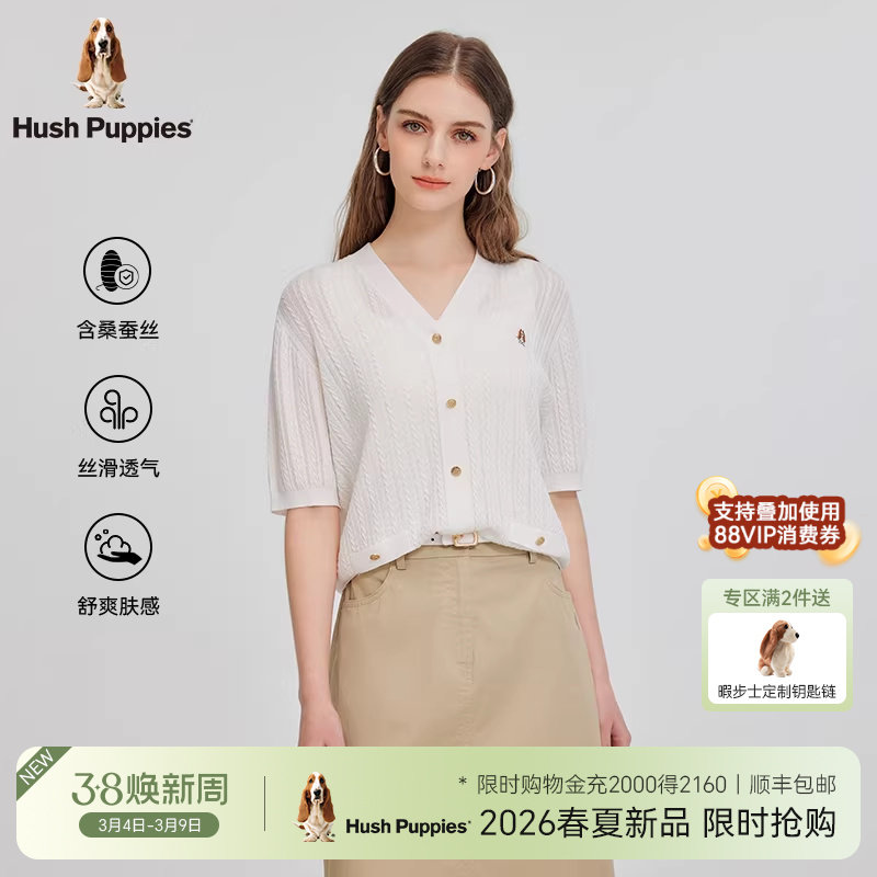 【桑蚕丝混纺】暇步士女装V领短袖T恤2026年夏轻薄光泽针织半袖女