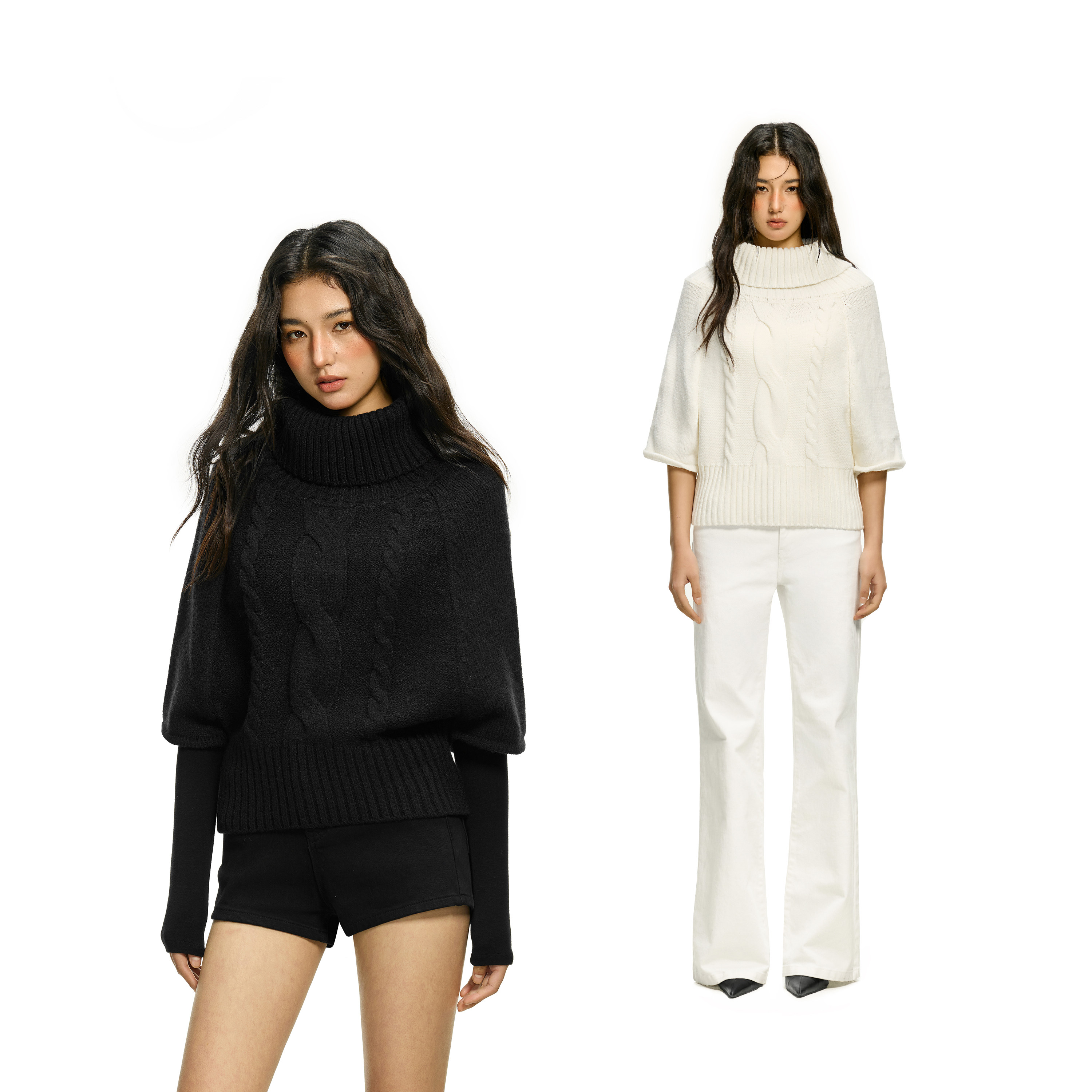 FDR官方店 绞花蝙蝠袖斗篷针织上衣女26年春季设计感高领半袖毛衣