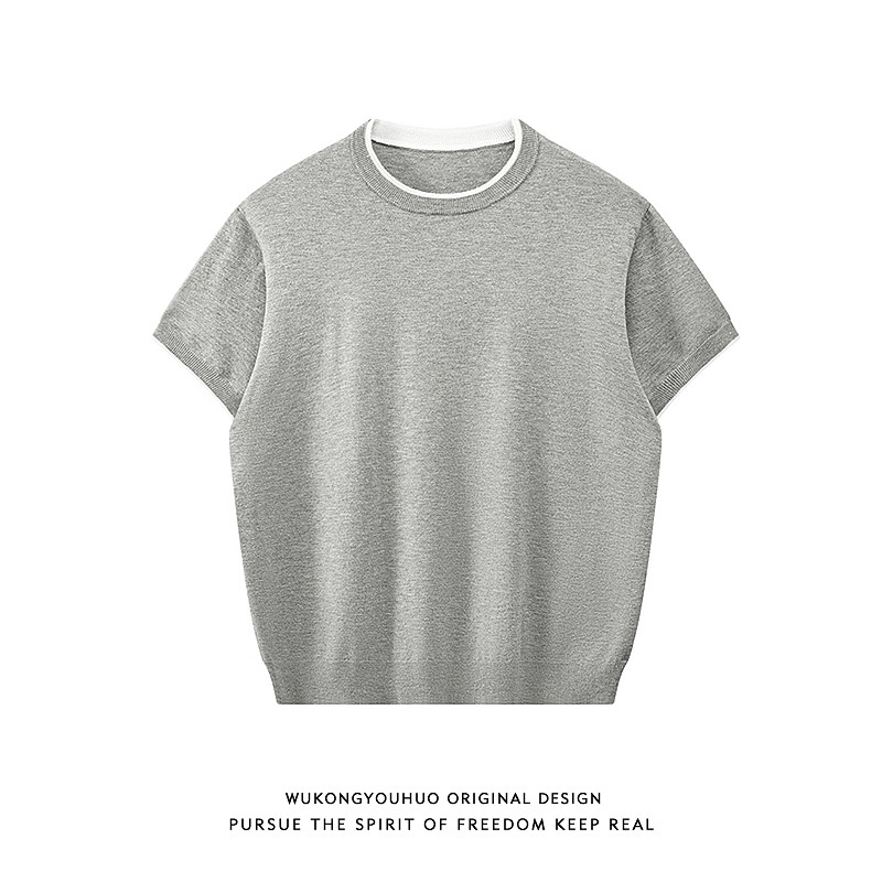 木岸muan江右上T春秋定制150克百搭针织半袖上衣女CQ-ZZ-Z2866