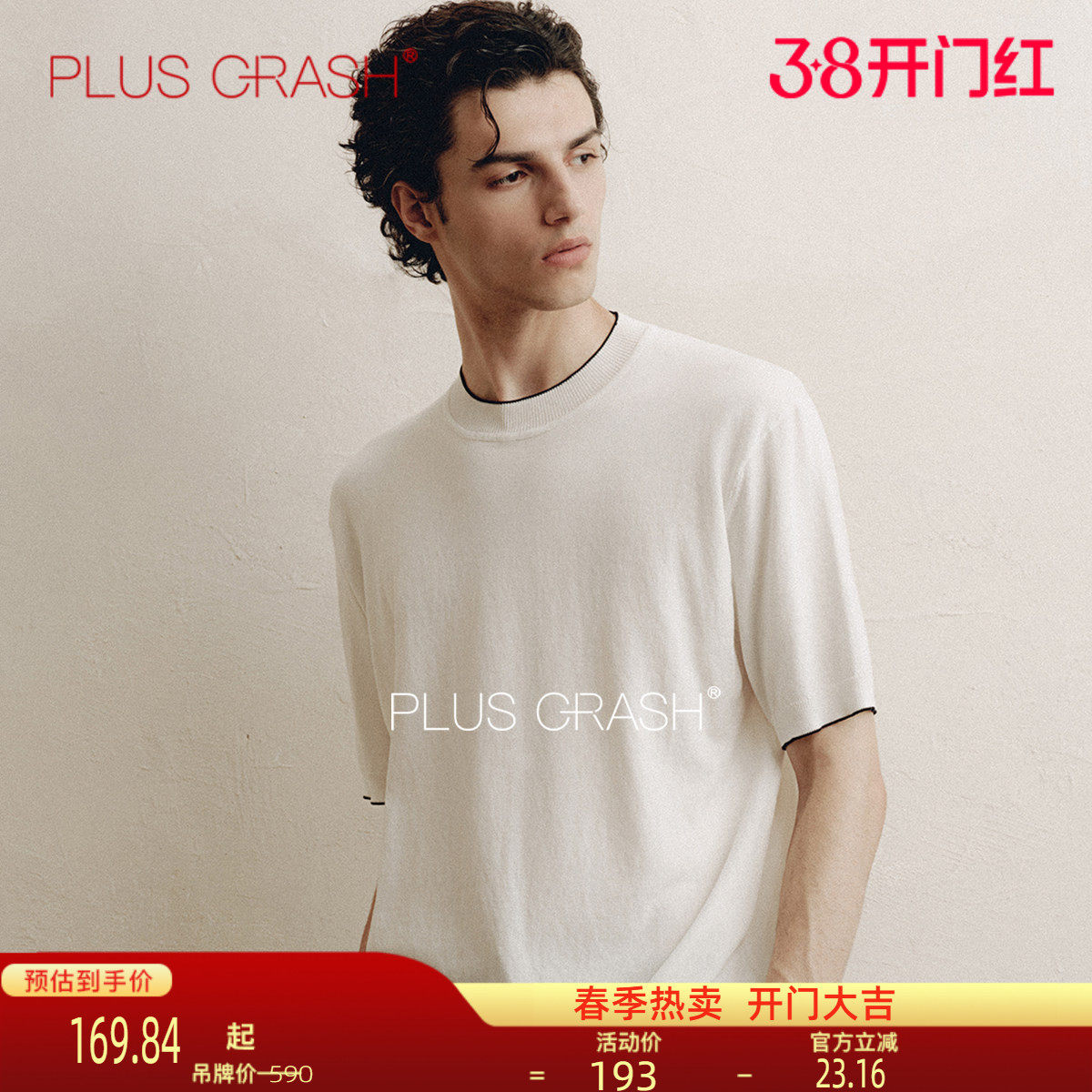 PLUS CRASH夏季新款莱赛尔短袖百搭男士针织半袖高智老钱风男装