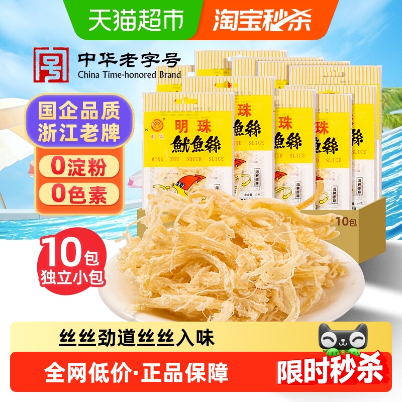 明珠舟山特产手撕鱿鱼丝条肉干海鲜休闲零食10g*10包烤鱼片鱼干