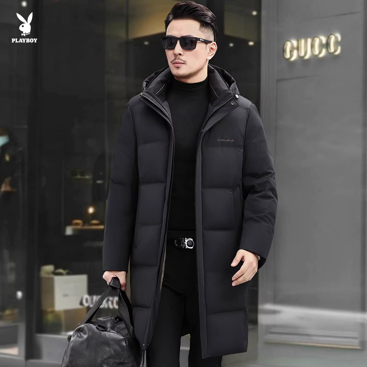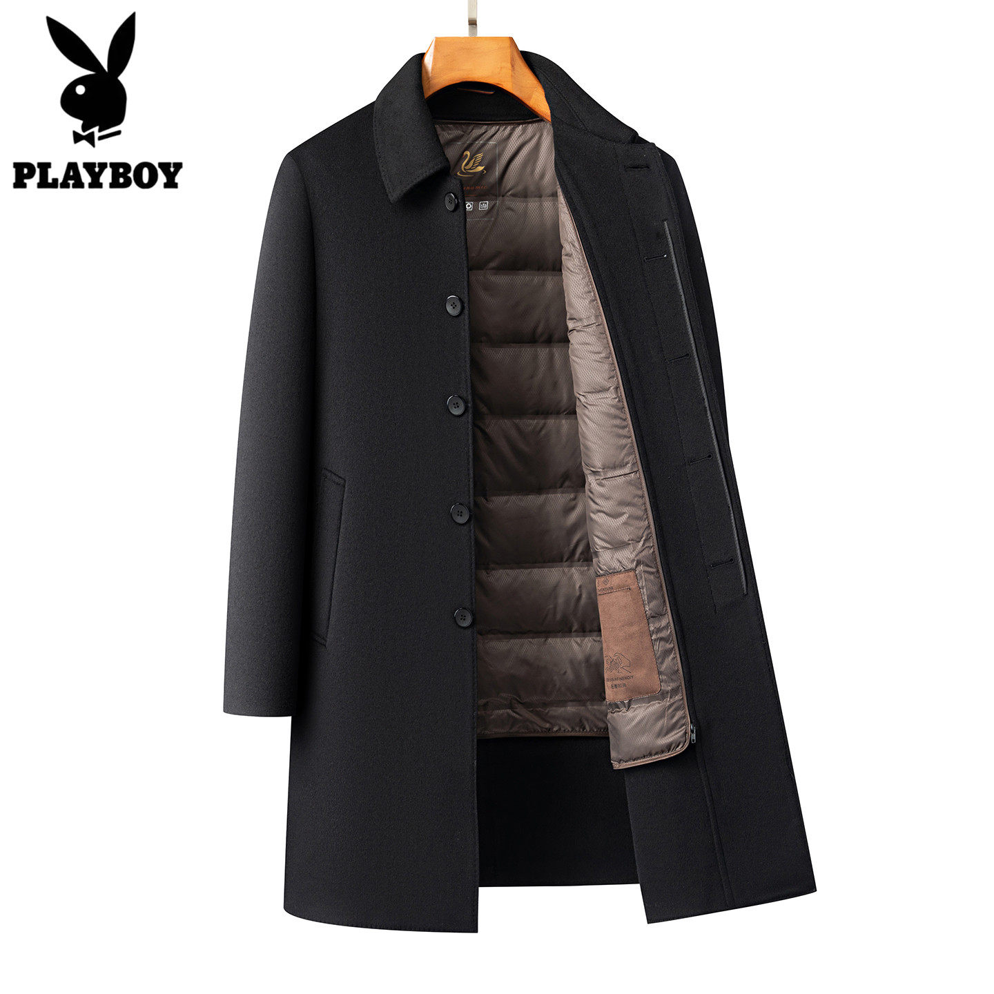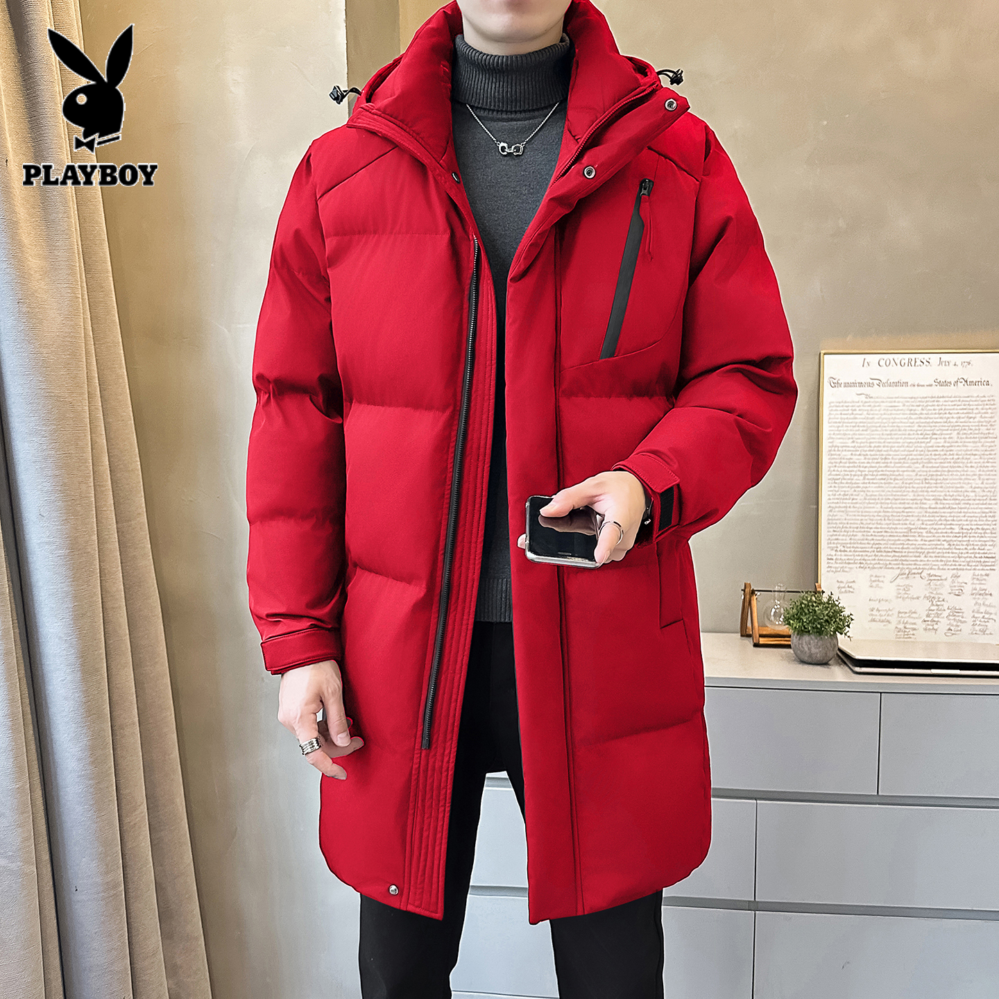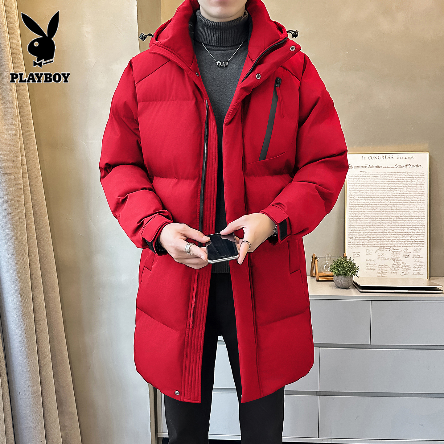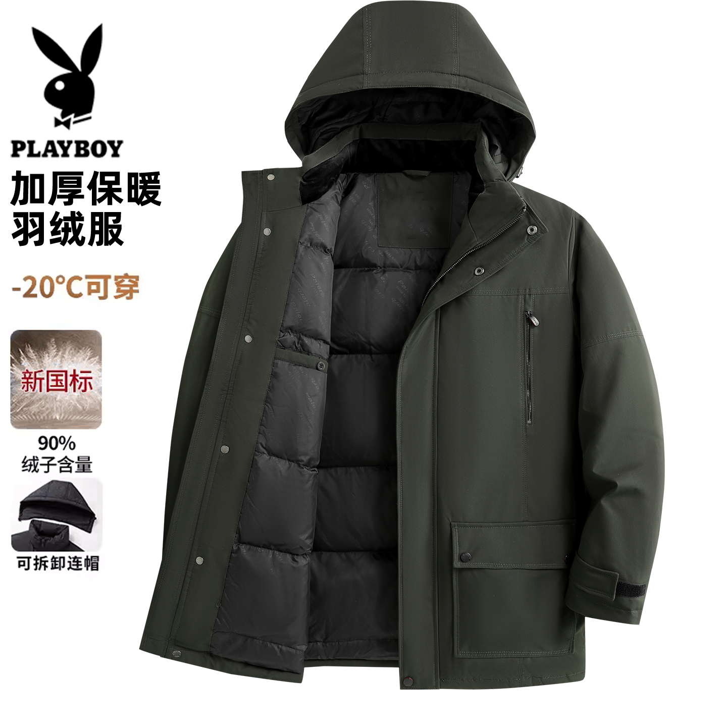 - 花花公子羽绒服男中长款