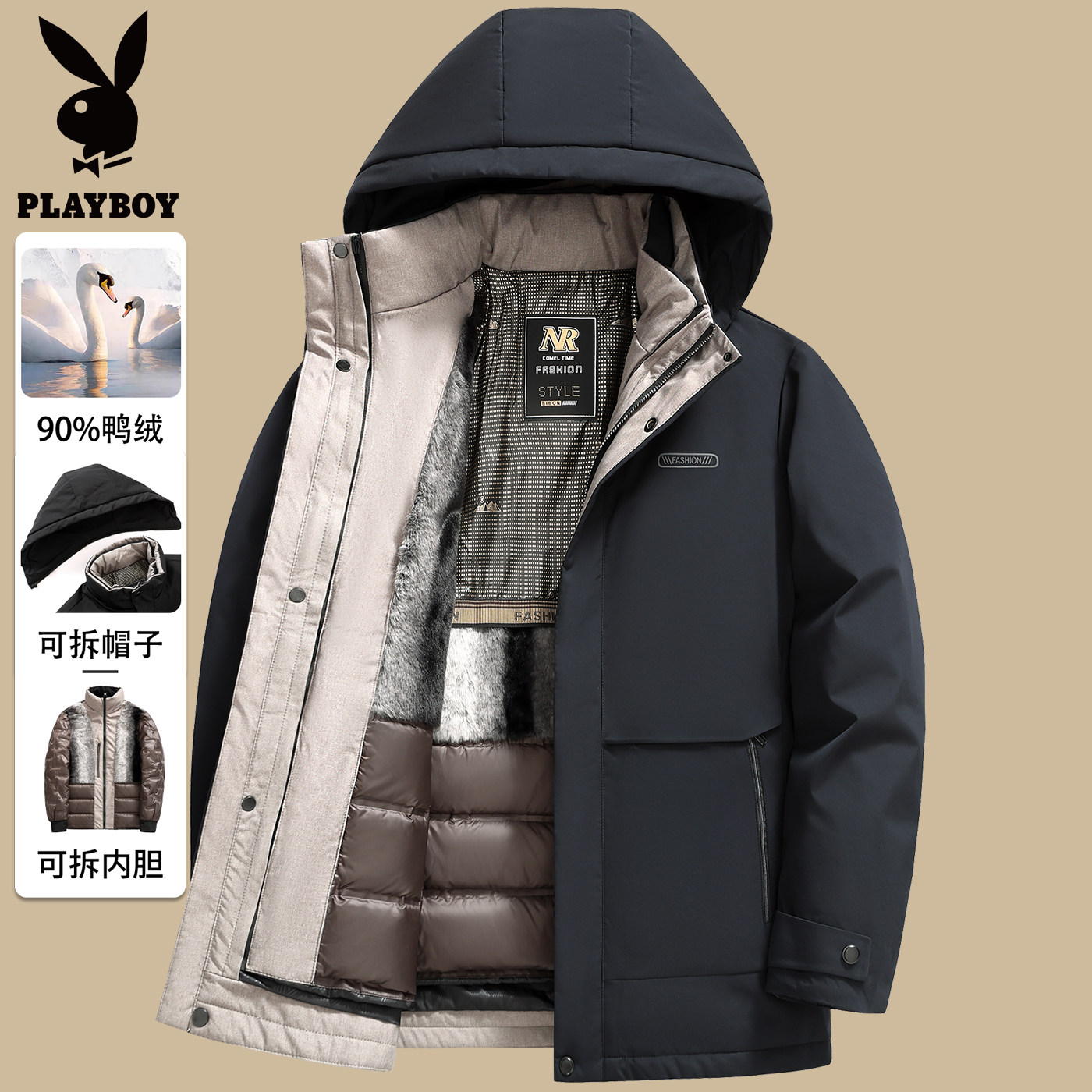 花花公子羽绒服男中长款相关商品