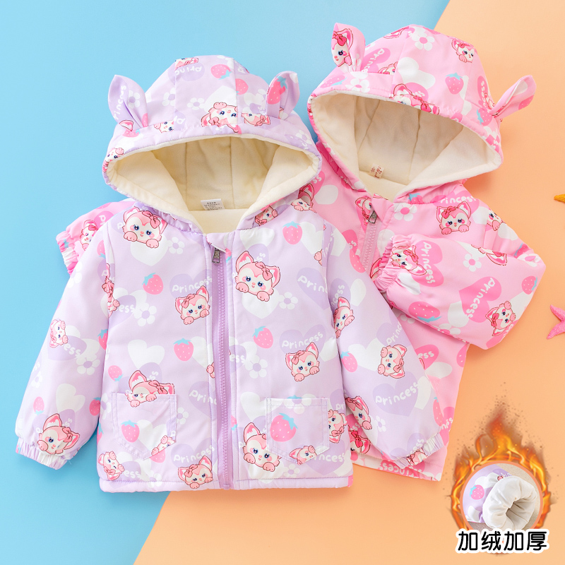儿童棉服冬装2025新款洋气婴童加绒夹棉连帽棉衣外套冬季宝宝棉袄