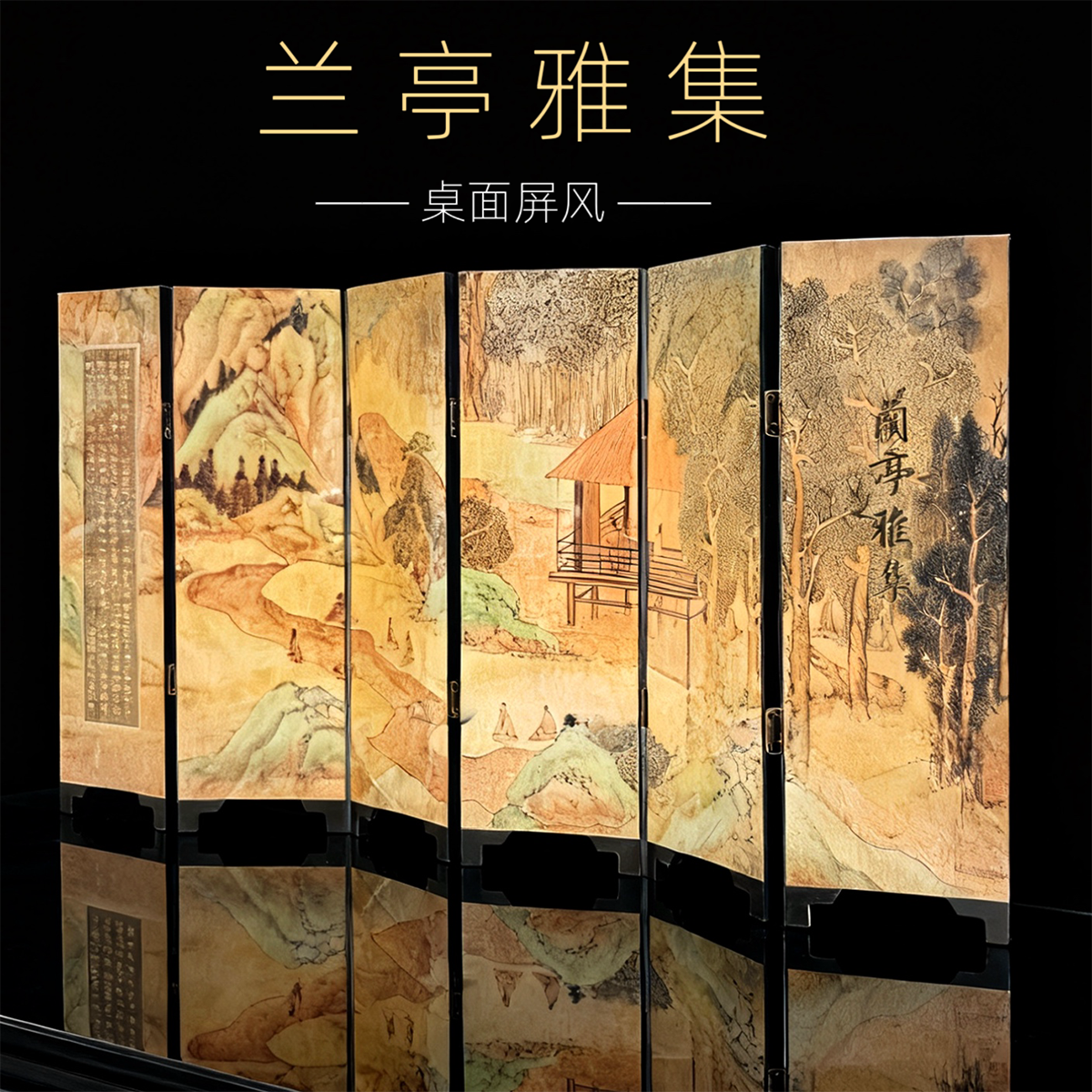 创意漆器小屏风客厅书房装饰摆件节日商务礼品 王羲之书法 兰亭序