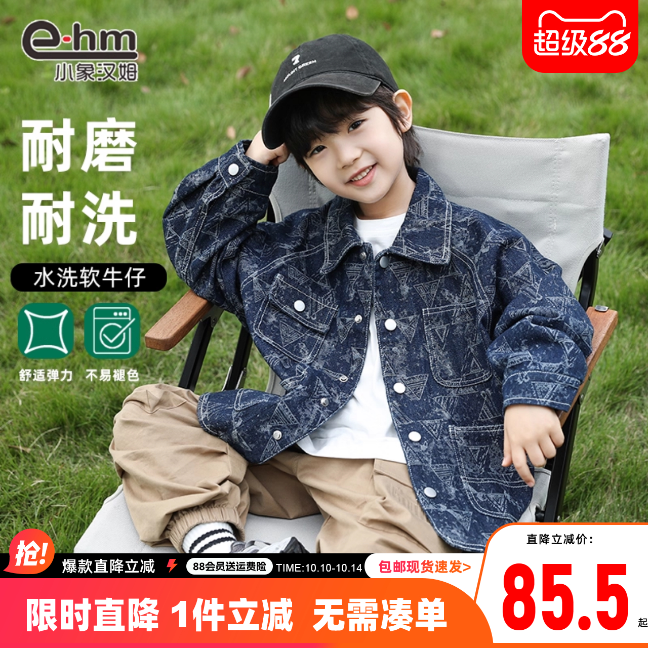 小象汉姆童装男童牛仔外套春秋款儿童连帽牛仔衣2025秋装新款韩版