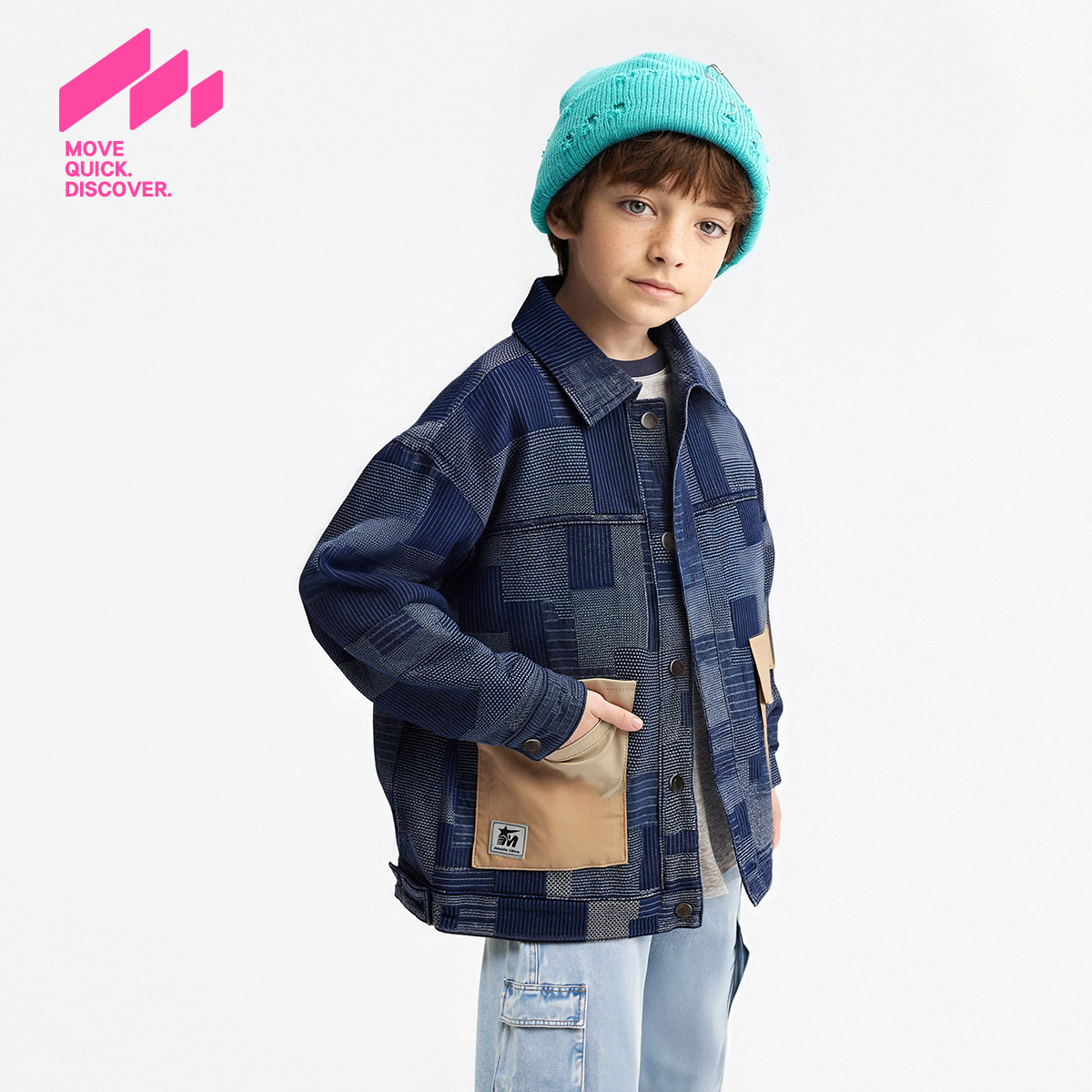 MQD童装男童翻领牛仔外套2025秋季新款儿童韩版撞色拼接宽松外套