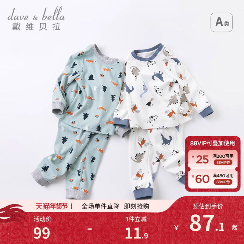 戴维贝拉儿童秋衣秋裤男童睡衣保暖套装纯棉秋季婴儿内衣线衣A类