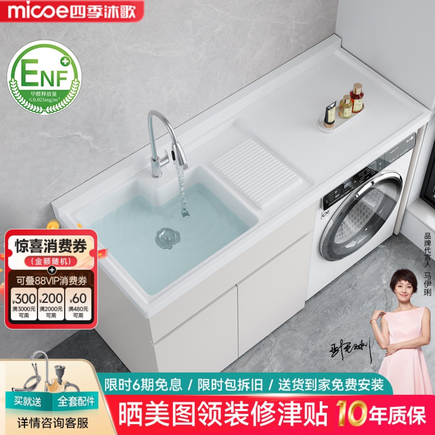 四季沐歌蜂窝铝阳台洗衣机柜组合阳台一体柜洗衣柜伴侣带搓板定制