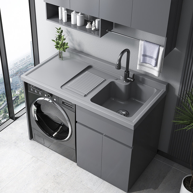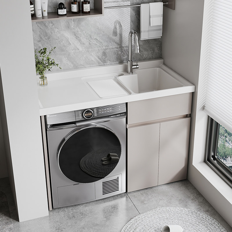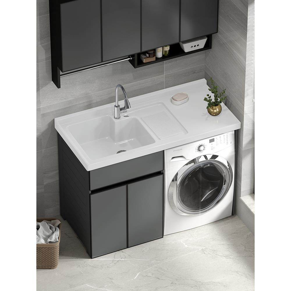 3Y阳台洗衣柜带搓板组合陶瓷盆一体洗衣池太空铝滚筒洗衣机柜伴侣
