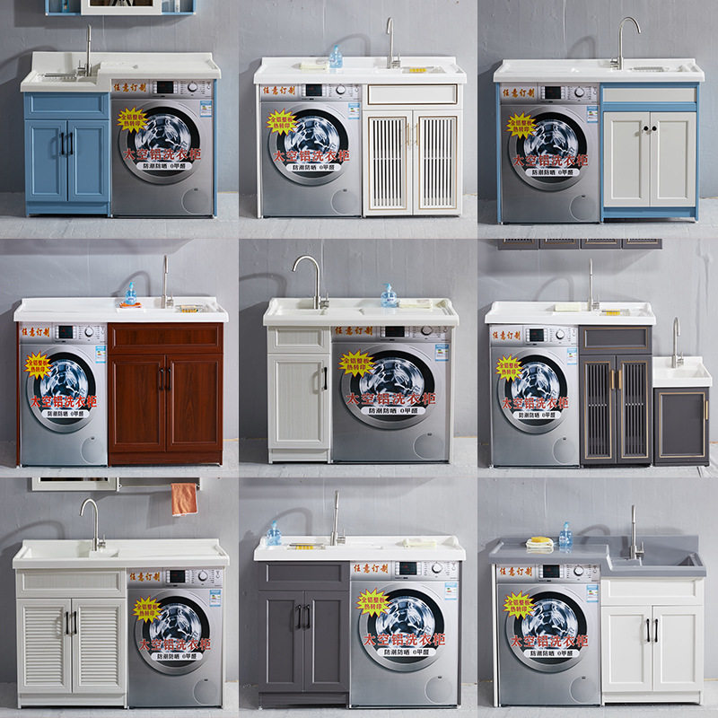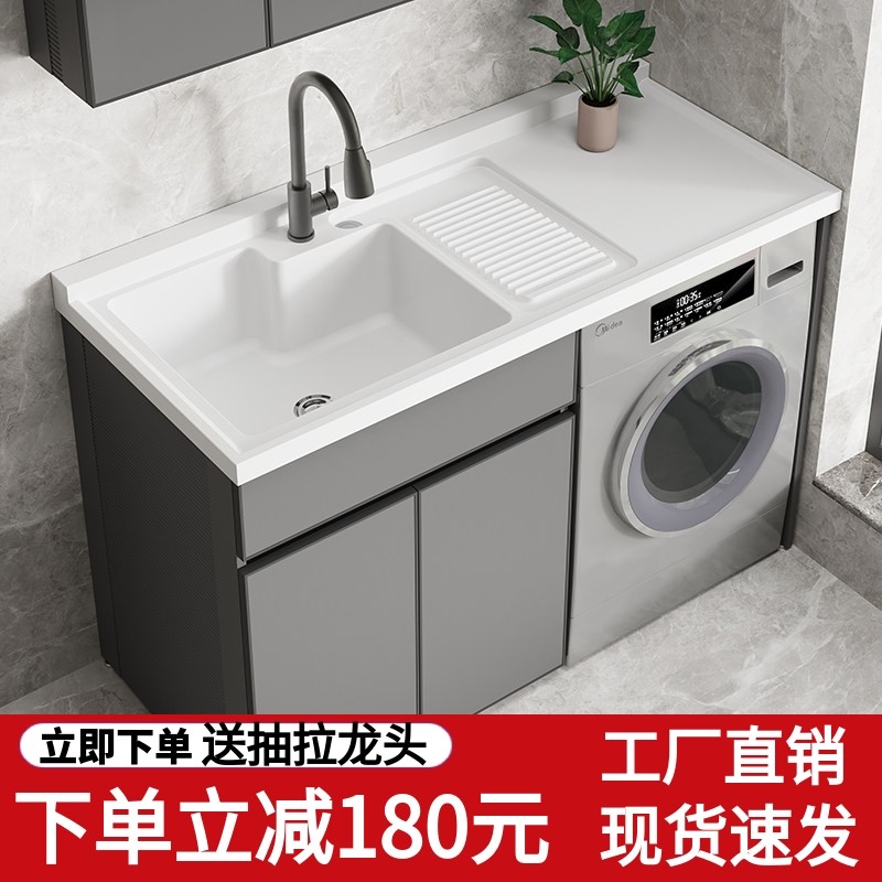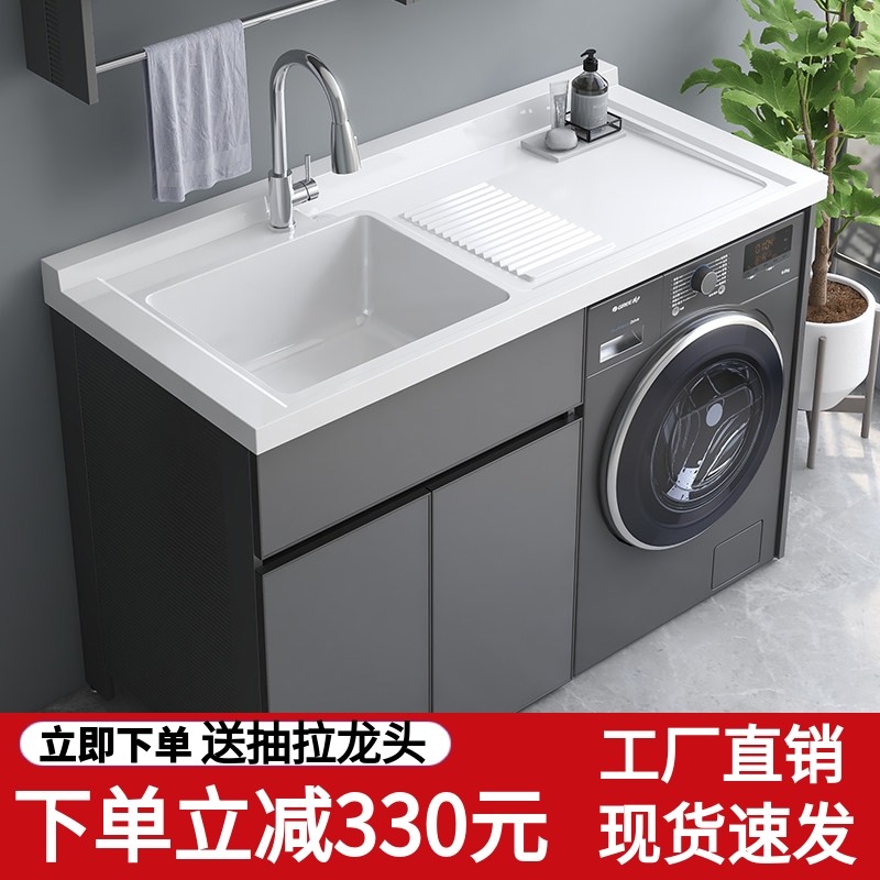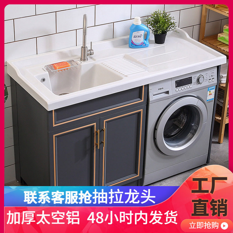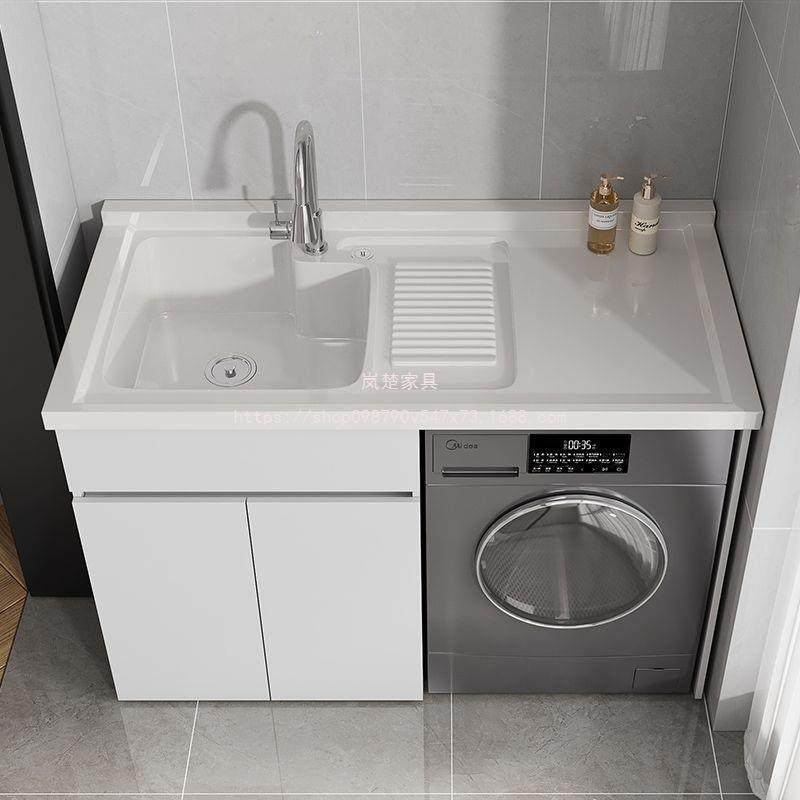 太空铝洗衣机柜子阳台手脸盆台面一体带搓板组合滚筒伴侣高低定制