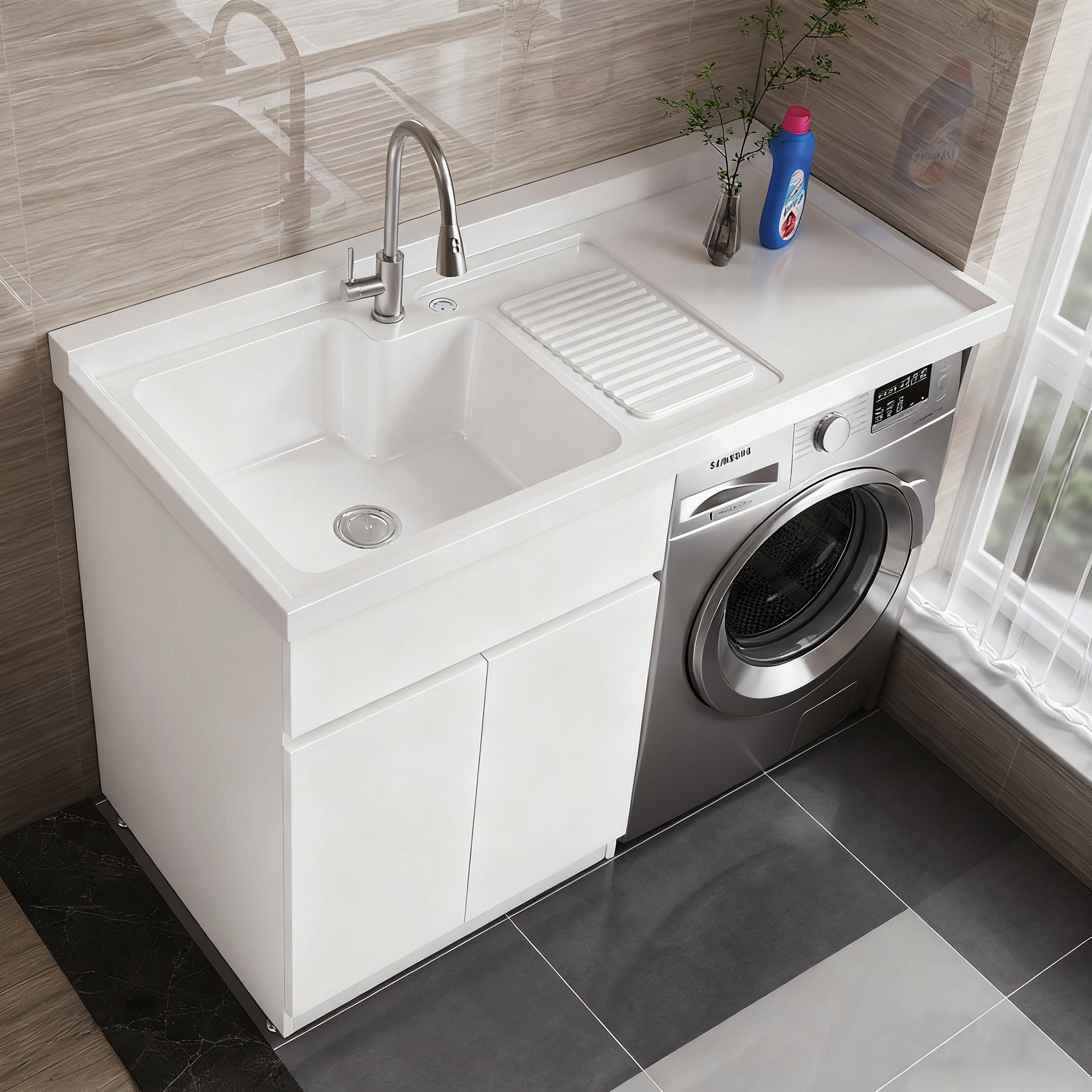 洗衣池阳台家用石英石带搓板一体盆洗衣机柜组合定制台盆洗手单盆